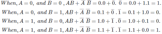 现在,真相表对等式ab +Âb̅表示满意。