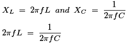 - 归纳电抗Xl等于电容电抗XC。